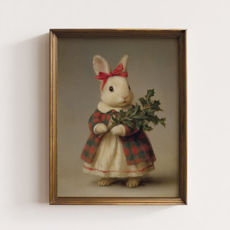 Cottage Bunny With Holly Art Print