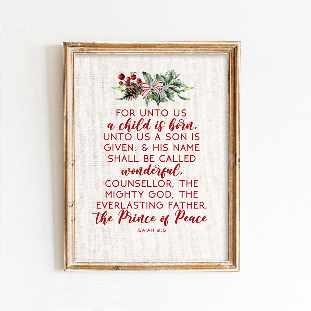 This beautiful art print features a the scripture Isaiah 9:6. Frame not included.